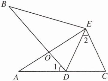 问题 如图,$\angle A= \angle B$,$AE = BE$,点$D在AC$边上,$\angle 1= \angle 2$,$AE$,$BD相交于点O$。求证:$CE = DE$。