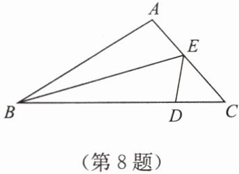 8. 如图,在$\triangle ABC$中,$D是BC$边上的一点,$AB = DB$,$BE平分\angle ABC$,交$AC边于点E$,连接$DE$。