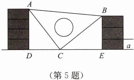 5. 在数学综合实践活动课上,小明将等腰直角三角板放在两堆砖块之间,如图所示。