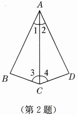 在$\triangle ABC$和$\triangle ADC$中,已知$\angle 1 = \angle 2$,$AC = AC$(公共边)。