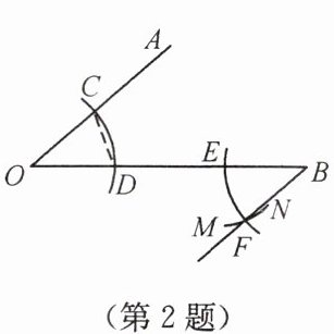 2. 如图,用尺规作出$\angle OBF= \angle AOB$,作图痕迹$\overset{\frown}{MN}$是(