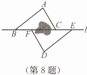 8. 如图,点$B$,$F$,$C$,$E在直线l$上($F$,$C$之间不能直接测量),点$A$,$D在l$异侧,测得$AB = DE$,$AC = DF$,$BF = EC$。