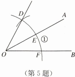 5. 如图,已知$\angle AOB$,以点$O$为圆心,以任意长为半径画弧①,分别交$OA$,$OB于点E$,$F$,再以点$E$为圆心,以$EF$长为半径画弧,交弧①于点$D$,画射线$OD$。若$\angle AOB = 28^{\circ}$,则$\angle BOD$的补角的度数为(