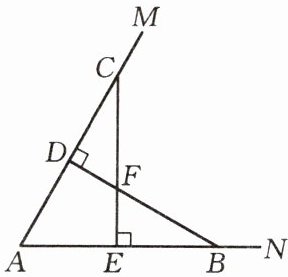 $FE \perp AN$且$FD \perp AM$,即$F$到$\angle A$的两边距离相等。