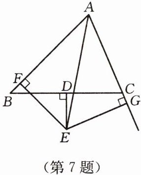 7. 如图,在$\triangle ABC$中,$D是BC$边的中点,$DE\perp BC交\angle BAC的平分线于点E$,$EF\perp AB于F$,$EG\perp AC的延长线于G$. 那么$BF = CG$吗?为什么?
