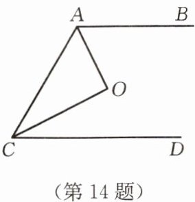 14. 如图,已知 $ AB // CD $,点 $ O $ 为 $ \angle CAB $,$ \angle ACD $ 的平分线的交点,点 $ O $ 到 $ AC $ 的距离为 $ 2 cm $,则两平行线间的距离为