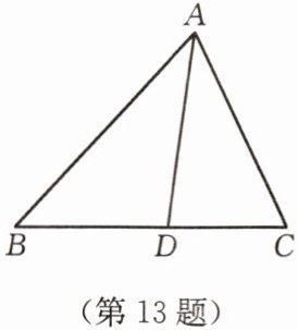 13. 如图,在 $ \triangle ABC $ 中,$ AD $ 是 $ \angle BAC $ 的平分线,$ AB : AC = 4 : 3 $,则 $ S_{\triangle ABD} : S_{\triangle ACD} = $