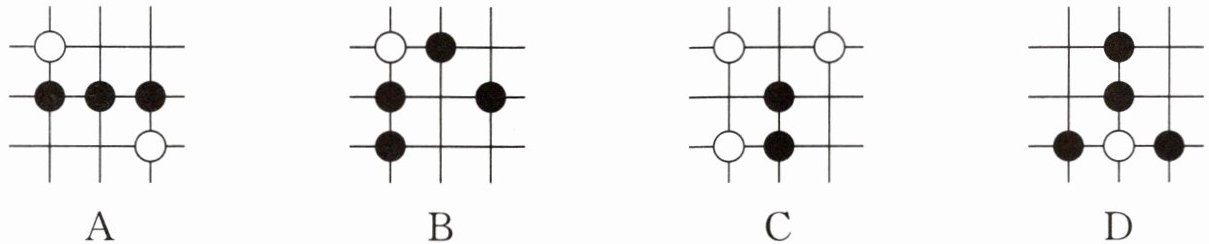 1. 围棋起源于中国,古代称之为“弈”,至今已有四千多年的历史. 下列由黑、白棋子摆成的图案中,是轴对称图形的是(