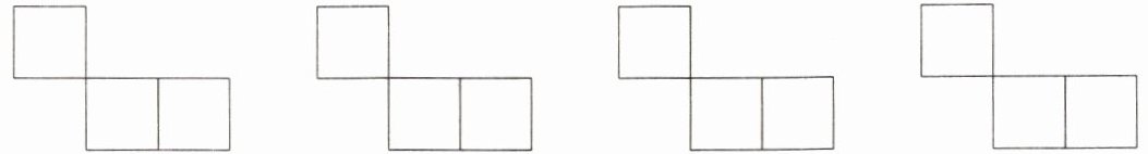 如图是由三个小正方形组成的图形,请你在图中补画一个小正方形,使补画后的图形为轴对称图形。