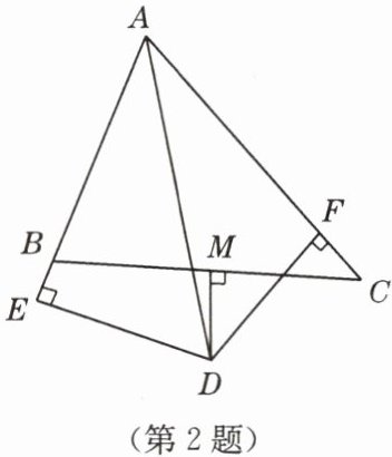2. 如图,在△ABC中,∠BAC= 60°,∠BAC的平分线AD与边BC的垂直平分线相交于点D,DE⊥AB交AB的延长线于点E,DF⊥AC于点F. 现有下列结论: