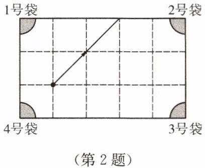 2. 如图是一个经过改造的台球桌面的示意图,图中四个角上的阴影部分分别表示四个人球孔.如果一个球按图中所示的方向被击出(球可以经过多次反弹),那么该球最后将落入的球袋是(