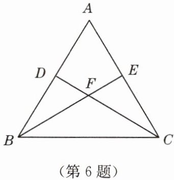 6. 如图,已知在等腰三角形 $ ABC $ 中,$ AB = AC $,点 $ D $,$ E $ 分别在边 $ AB $,$ AC $ 上,且 $ AD = AE $,连接 $ BE $,$ CD $,交于点 $ F $.