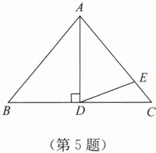 5. 如图,在 $ \triangle ABC $ 中,$ AB = AC $,$ AD \perp BC $,$ \angle BAD = 40^{\circ} $,$ AD = AE $. 求 $ \angle CDE $ 的度数.