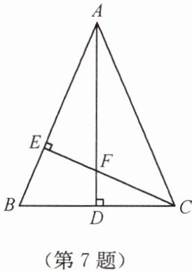 7. 如图,在 $ \triangle ABC $ 中,$ AB = AC $,$ AD \perp BC $,$ CE \perp AB $,$ AE = CE $. 求证:(1)$ \triangle AEF \cong \triangle CEB $;(2)$ AF = 2CD $.