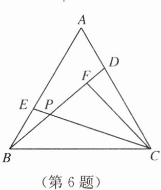 6. 如图,在等边△ABC中,点D,E分别在边AC,AB上,且AD= BE,BD,CE交于点P,CF⊥BD,垂足为F。