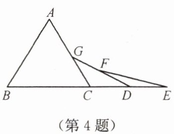 4. 如图,已知△ABC是等边三角形,点B,C,D,E在同一直线上,且CG= CD,DF= DE,则∠E的大小是