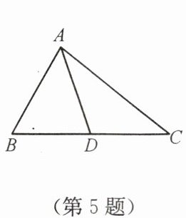 5. 如图,$AD$ 是 $\triangle ABC$ 的边 $BC$ 上的中线,若 $\triangle ABD$ 的周长比 $\triangle ACD$ 的周长小 $5$,则 $AC$ 与 $AB$ 的差为