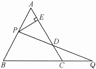 如图,过边长为1的等边△ABC的边AB上一点P,作PE⊥AC于点E,Q为BC延长线上一点,当PA= CQ时,连PQ交AC边于点D,则DE的长为(