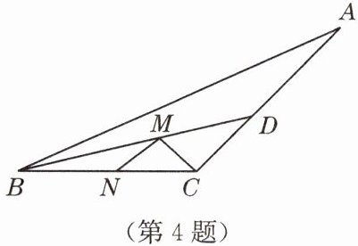 4. 如图,钝角三角形 $ ABC $ 的面积为 $ 15 $,最长边 $ AB = 10 $,$ BD $ 平分 $ \angle ABC $,点 $ M $,$ N $ 分别是 $ BD $,$ BC $ 上的动点,求 $ CM + MN $ 的最小值。