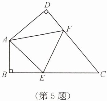 5. 如图,四边形 $ ABCD $ 中,$ \angle C = 50^{\circ} $,$ \angle B = \angle D = 90^{\circ} $,$ E $,$ F $ 分别是 $ BC $,$ DC $ 上的点,当 $ \triangle AEF $ 的周长最小时,求 $ \angle EAF $ 的度数。