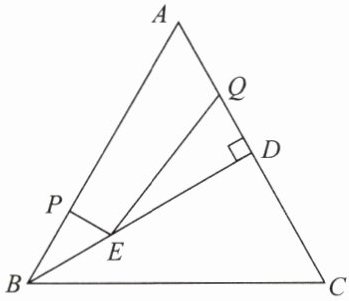 如图,在等边 $ \triangle ABC $ 中,$ BD \perp AC $ 于点 $ D $,点 $ P $,$ Q $ 分别为线段 $ AB $,$ AD $ 上的两个定点,且 $ QD = 15 $,$ BP = AQ = 20 $。