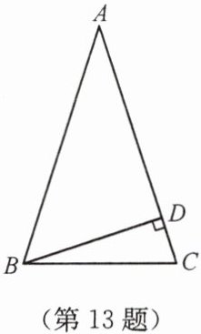 13. 如图,在等腰 $ \triangle ABC $ 中,$ AB = AC $,$ \angle A = 36^{\circ} $,$ BD \perp AC $ 于点 $ D $,则 $ \angle CBD = $