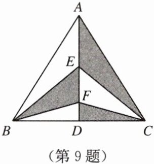 9. 如图,$ \triangle ABD $ 和 $ \triangle ACD $ 关于直线 $ AD $ 对称,若 $ S_{\triangle ABC} = 10 $,则图中阴影部分的面积为
