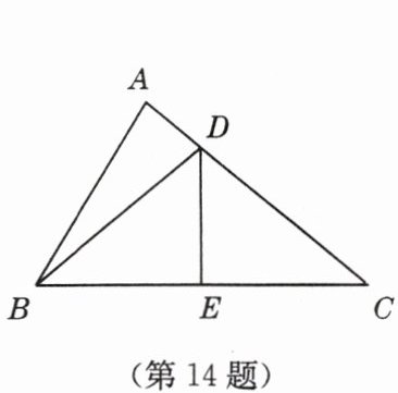 14. 如图,已知在 $ \triangle ABC $ 中,$ DE $ 是 $ BC $ 的垂直平分线,垂足为 $ E $,交 $ AC $ 于点 $ D $。若 $ AB = 6 $,$ AC = 9 $,则 $ \triangle ABD $ 的周长是______。