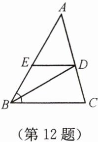 12. 如图,在 $ \triangle ABC $ 中,$ BD $ 平分 $ \angle ABC $,$ ED // BC $,已知 $ AB = 3 $,$ AD = 1 $,则 $ \triangle AED $ 的周长等于