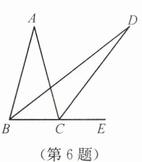 6. 如图,在$\triangle ABC$中,$AB = AC$,$\angle ACB = 75^{\circ}$,$E$ 为 $BC$ 延长线上一点,$\angle ABC$ 与$\angle ACE$ 的平分线相交于点 $D$,则$\angle D$ 的度数为(