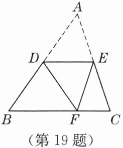 19. 如图,$D$,$E$ 为$\triangle ABC$两边 $AB$,$AC$ 的中点,将$\triangle ABC$ 沿线段 $DE$ 折叠,使点 $A$ 落在点 $F$ 处,若$\angle B = 55^{\circ}$,则$\angle BDF = $
