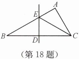 18. 如图,在$\triangle ABC$中,$\angle B = 30^{\circ}$,$BC$ 的垂直平分线交 $AB$ 于点 $E$,垂足为 $D$,$CE$ 平分$\angle ACB$。若 $BE = 2$,则 $AE$ 的长等于