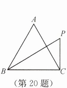 20. 如图,在等边三角形 $ABC$ 中,过点 $C$ 作垂直于 $BC$ 的直线交$\angle ABC$ 的平分线于点 $P$,且 $BP = 5$,则点 $P$ 到边 $AB$ 所在直线的距离为