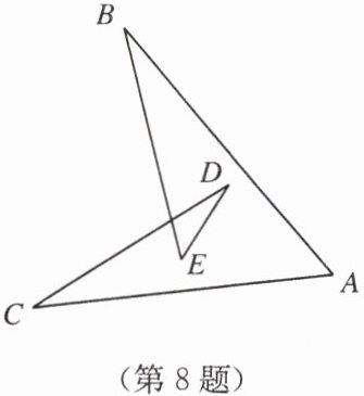 8. 某位运动员在冰面上滑出了如图所示的几何图形,请计算出$\angle A + \angle B + \angle C + \angle D + \angle E$的度数为