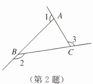 2. 如图,$\angle 1$,$\angle 2$,$\angle 3是\triangle ABC$的三个不同的外角,则$\angle 1 + \angle 2 + \angle 3 = $