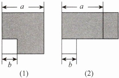 如图(1),边长为$a的大正方形剪去一个边长为b$的小正方形,然后将图(1)中的阴影部分拼成一个长方形[如图(2)所示].