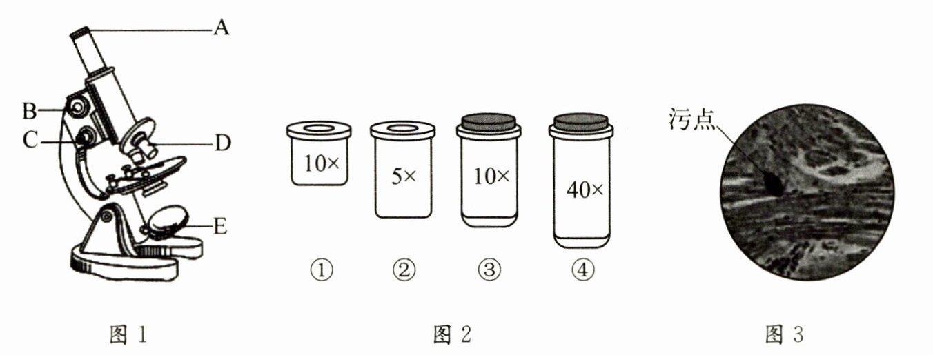 (填图 1 中字母),使镜筒慢慢下降,直至物镜前端接近玻片。横线上分别填写的是(A