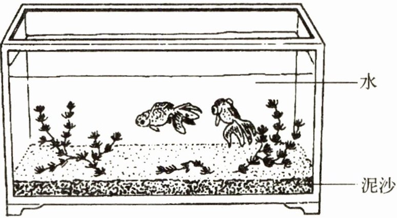 27. 下图所示的水族箱是类似生态瓶的人工生态系统,请据图回答问题。