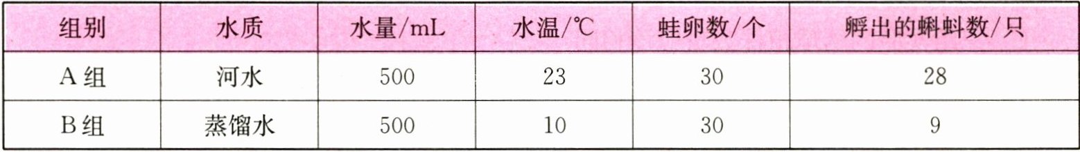6. 某校生物学兴趣小组的同学们探究不同水质对蛙卵孵化的影响,结果见下表。