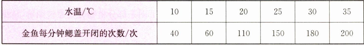 ④ 10 min 后记录金鱼每分钟鳃盖开闭的次数,连续测量 3 次,取平均值。实验结果如下表所示。
