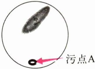 9. 小明用光学显微镜观察草履虫时,视野如右图所示,若将污点A移出视野,则玻片的移动方向是(