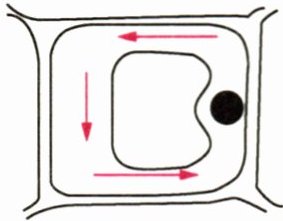 8. 若右图所示的是在光学显微镜下观察到的细胞质流动方向(图中箭头)和叶绿体(图中黑点)在细胞中的所在位置,则细胞质的实际流动方向和叶绿体的实际位置分别是(