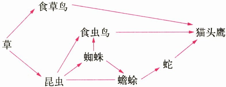 草→昆虫→蜘蛛→蟾蜍→蛇→猫头鹰