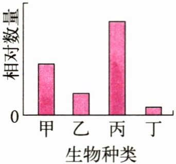 问题 假设一个处于稳定状态的生态系统中的甲、乙、丙、丁四种生物构成了食物链,在某一时间内这四种生物在这个生态系统中的相对数量关系如右图所示。若乙的数量增加,则会引起(