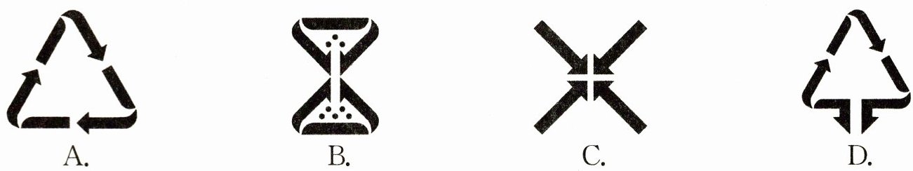 10. 现在的很多环境问题是由人类随意处理垃圾引起的,我们要积极践行垃圾分类回收,留住碧水蓝天。下图中,“可回收物”的标志是(
