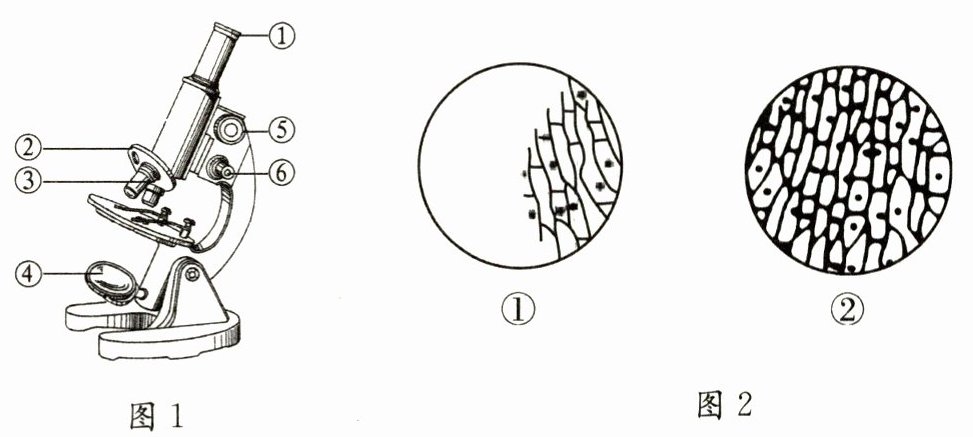 9. 在使用如图 1 所示的显微镜观察自制的洋葱鳞片叶表皮细胞的临时装片时,观察到了如图 2 所示的物像,下列叙述中正确的是(