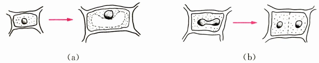 个体的发育离不开细胞的分裂和生长,下图所示的是某细胞的两种生命现象,请据图回答问题。