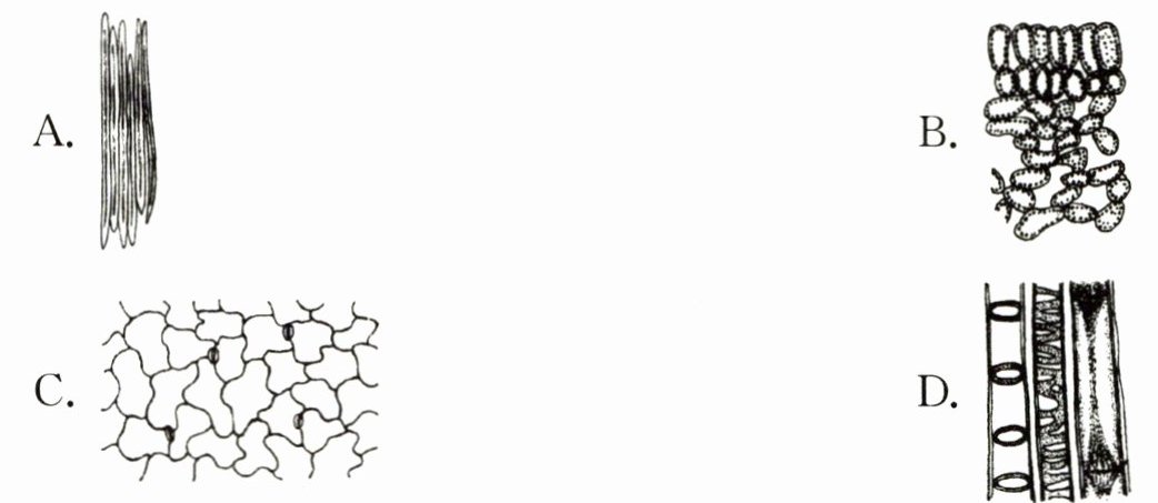 7. 以下是植物的几种组织示意图,能储存有机物的组织是(