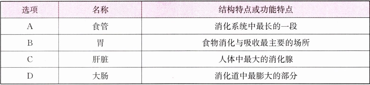 5. 下列消化系统的器官,其名称与结构特点或功能特点对应一致的是(