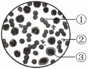 9. 下图是显微镜下观察到的人血涂片示意图,图中所标注的①~③是不同的血细胞。下列叙述中错误的是(